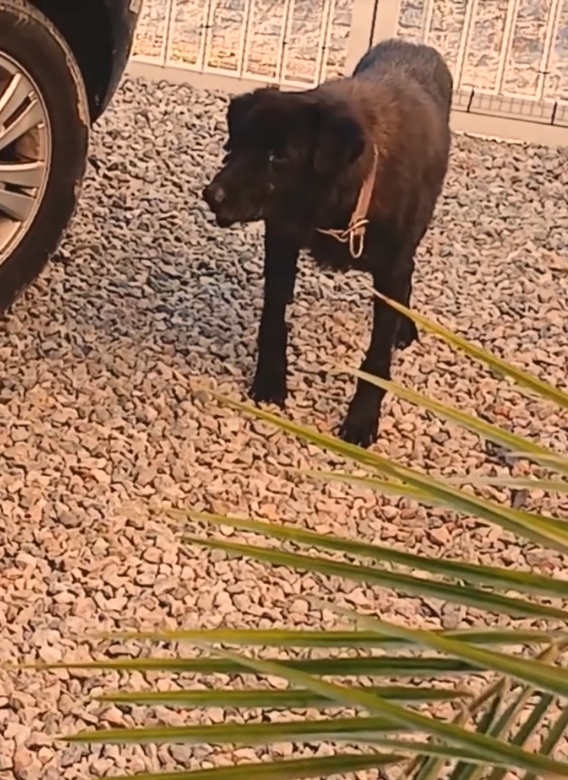 Mesmo com medo, o cãozinho ainda encontrava forças para abanar o rabo, como se dissesse que ainda havia espaço para confiar.