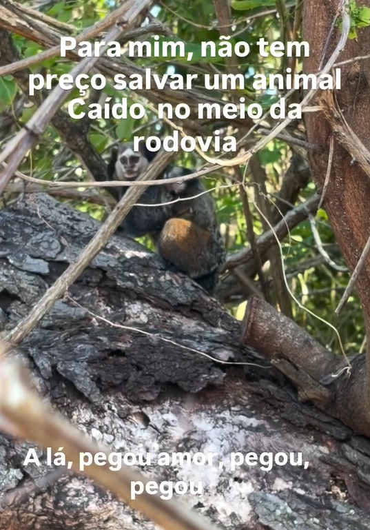 No meio da pista, quase imperceptível para quem passasse rápido demais, estava um filhote de sagui caído no asfalto, precisando de socorro urgente. A cena era desesperadora. A qualquer instante, um veículo poderia passar e transformar aquele momento em uma tragédia.