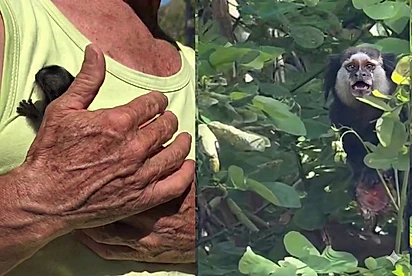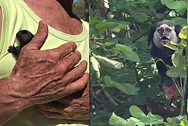 Francisco, confiante, pediu para ela se acalmar. E então, em questão de segundos, aconteceu o que eles esperavam: a mãe sagui se aproximou rapidamente, pegou o filhotinho e o colocou contra o corpo, como se dissesse “agora você está seguro”.