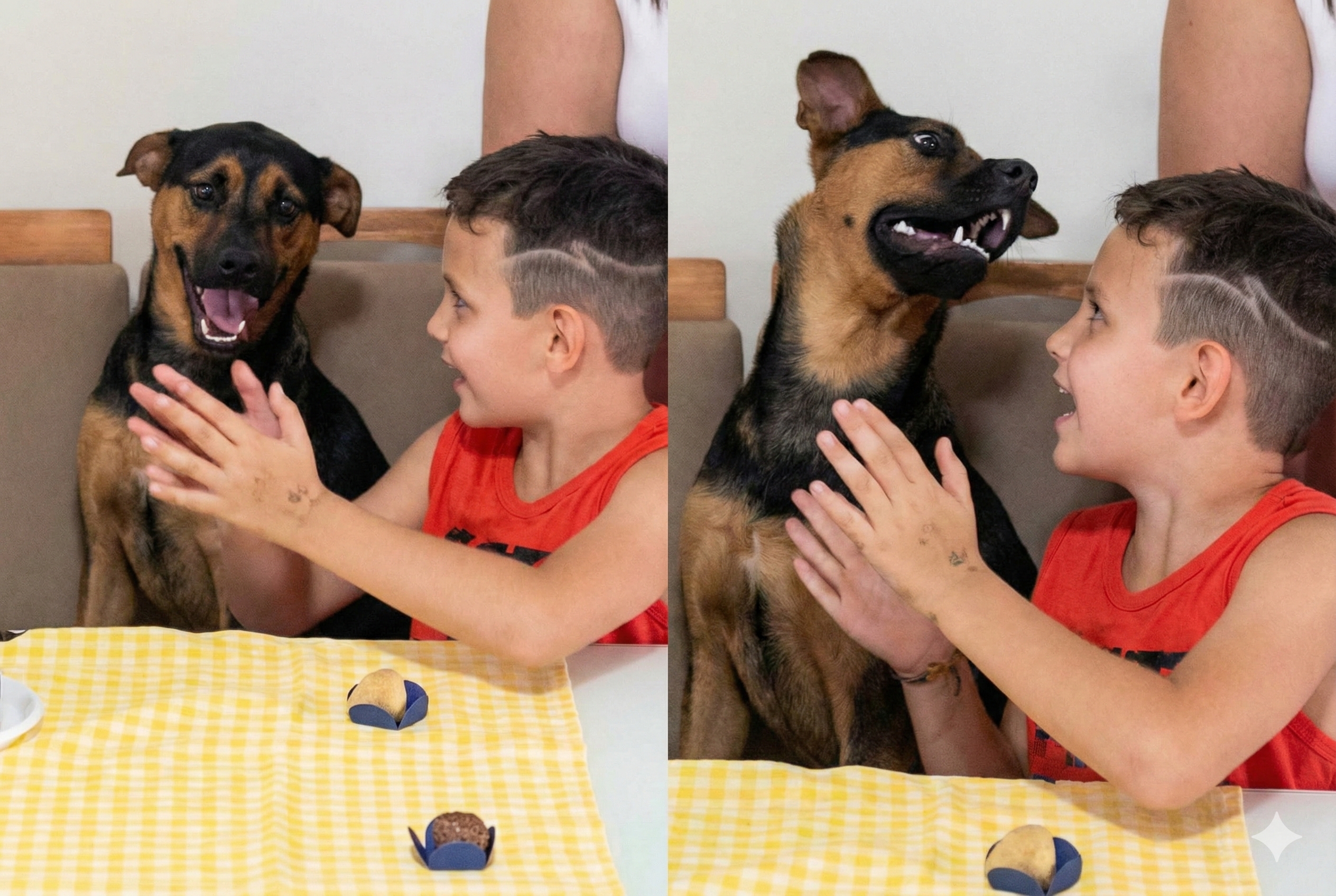 Enquanto a família cantava “Parabéns pra você”, Gustavo Augusto aparecia feliz, distribuindo lambeijos, abanando o rabinho e ‘sorrindo’, como se estivesse agradecendo por cada segundo daquele momento. A cena rapidamente viralizou e emocionou internautas.