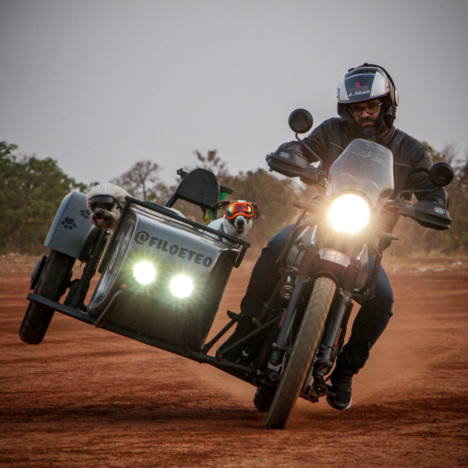 Sempre ao lado do tutor, os cãezinhos aparecem equipados com capacete, óculos de proteção e aquele jeitinho corajoso de quem ama sentir o vento no rostinho. A cena chama atenção por onde passa e conquista todo mundo que cruza o caminho deles.