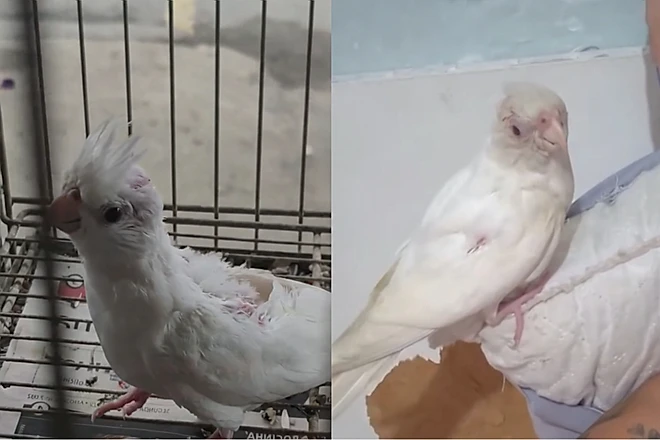 O que Juliana viu foi um animalzinho machucado, fragilizado e em uma situação que doía só de olhar. Segundo ela, a calopsita estava “sem penas, como se tivessem sido arrancadas”.