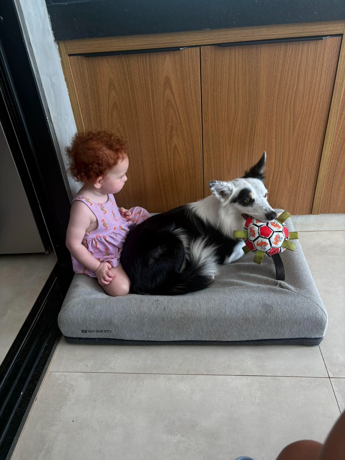 O vínculo entre a criança e o border collie estabeleceu-se cedo, quando ela ainda era bebê, em um encontro que a família descreve como afeto imediato.