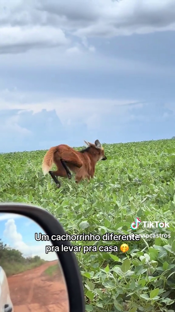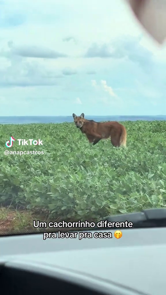 Em encontro raro em plantação no DF, lobo-guará encara veterinária e provoca reação na web: “Cachorrinho diferente”