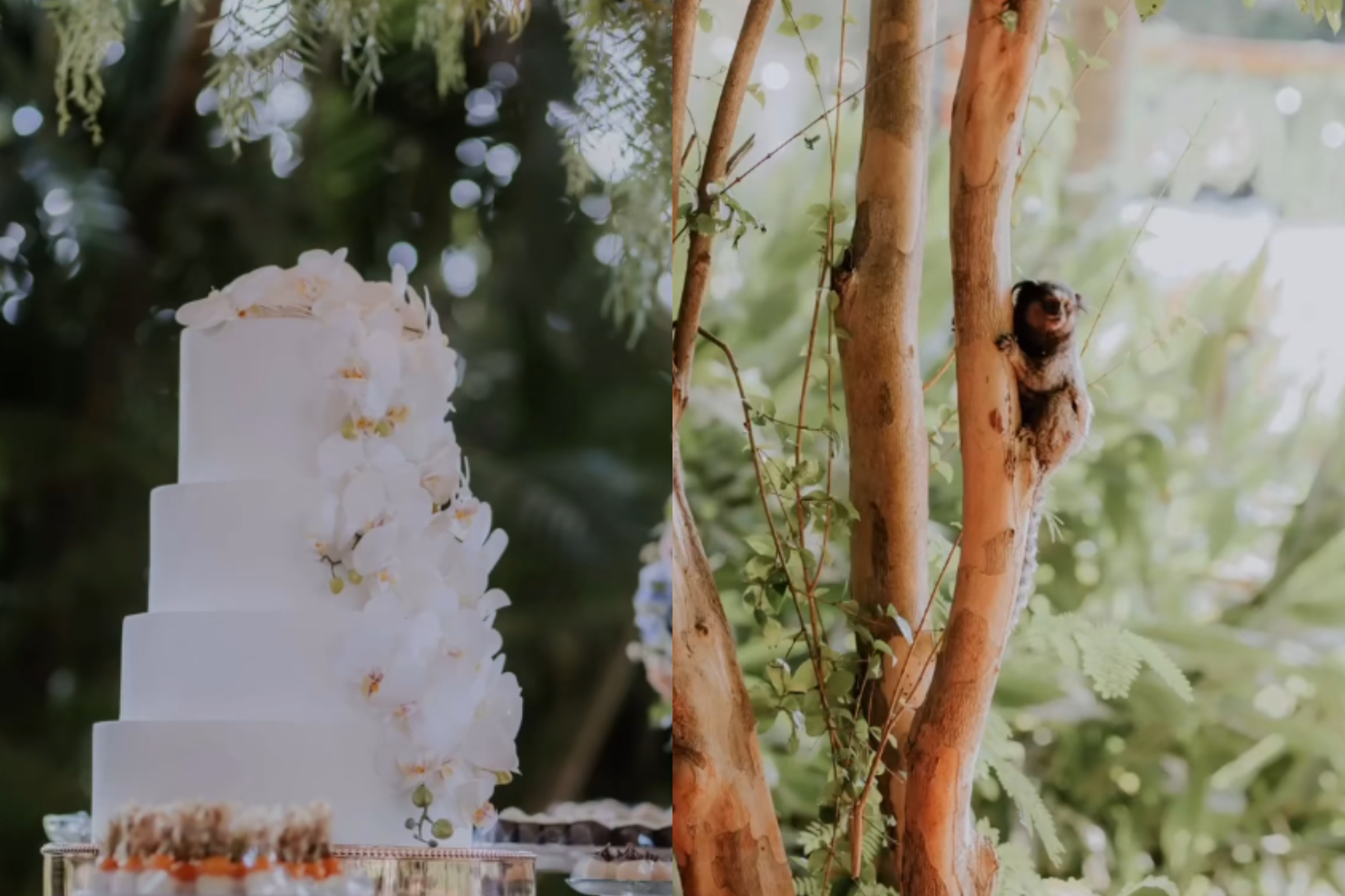 O “ele”, no caso, era um macaquinho sagui que resolveu aparecer no casamento e garantir o próprio docinho da festa.