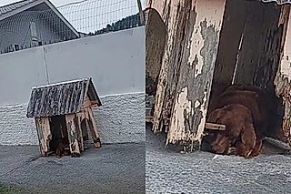 "Olha só, faz meia hora que a casinha chegou. Tinha sol e agora caiu um temporal. Ó lá ele, já está usando a casinha. Oi Kona! Vem que não dá para te ver... Que lindo! Gostou?", celebrou a moradora ao ver o animal protegido do temporal.