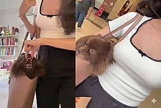 Dentro da bolsa, vai uma cachorrinha da raça lulu da pomerânia que simplesmente ama passear desse jeito. Mas nem todo mundo enxerga a cena da mesma forma.
