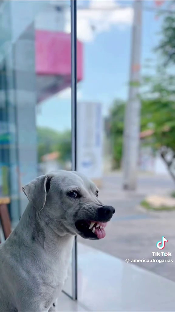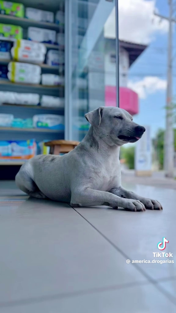 O animal ganhou notoriedade nas redes sociais após a divulgação de um vídeo que mostra sua rotina de trabalho na porta da loja.