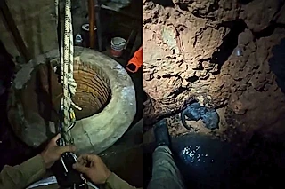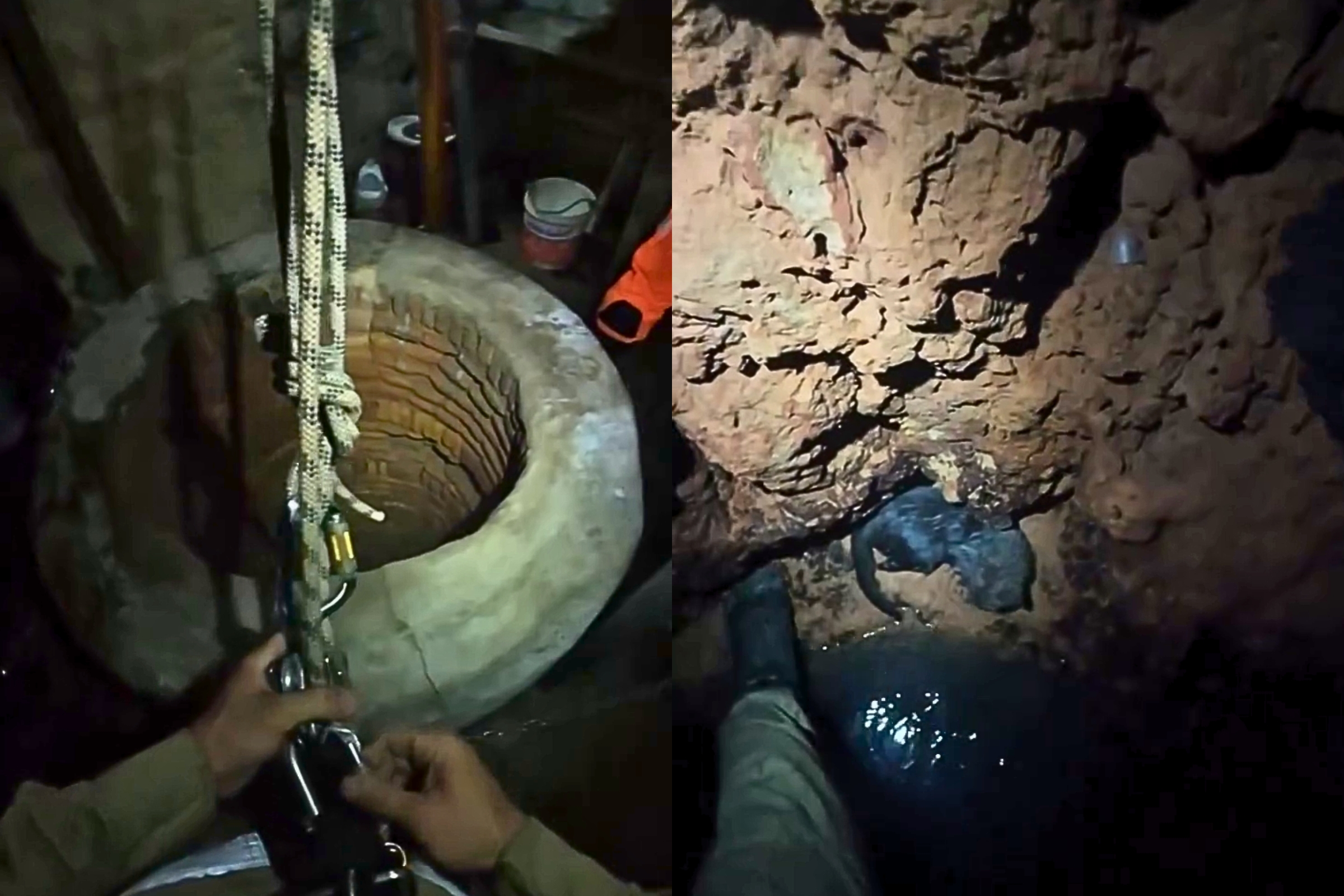 Felizmente o impacto da queda foi reduzido pela presença de água no fundo do poço. Após atingir a base da estrutura, o gato buscou abrigo em aberturas formadas por erosão nas paredes internas da cacimba.