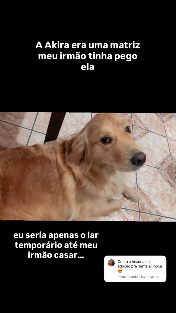 Akira tem um passado como matriz e foi adotada pelo irmão da atual tutora. O plano inicial era simples: a cadela ficaria sob os cuidados da irmã apenas até que o adotante se casasse.