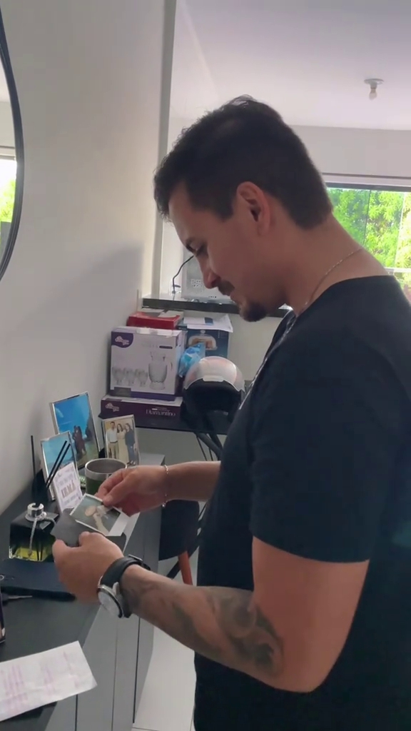A primeira pista levou Alexandre a um momento de memória afetiva. Dentro do envelope havia uma foto do casal acompanhada de uma frase que fazia referência à construção do lar que os dois já conquistaram juntos.