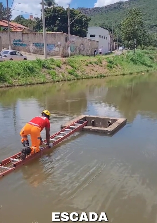 Segundo Mirane, a equipe chegou em poucos minutos e foi muito atenciosa. Os bombeiros não mediram esforços para salvar aquela pequena vida. Com cuidado, utilizaram uma escada para formar uma espécie de ponte entre a margem e o extravasor.