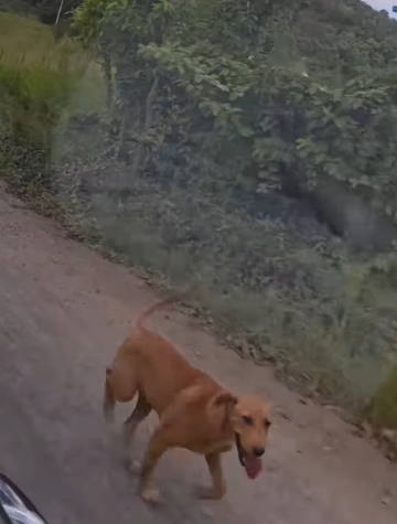 Em uma de suas saídas, avistou um cachorro claramente desorientado à beira da estrada.