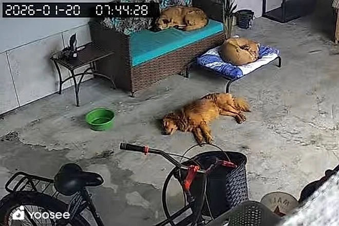 Ela os colocou para dormir na garagem, apenas para protegê-los da tempestade. No dia seguinte, saiu para trabalhar. Horas depois, ao checar a câmera de segurança, percebeu que os três continuavam exatamente onde haviam sido deixados.