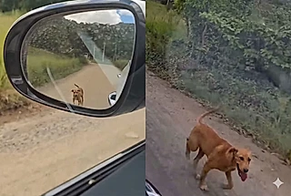 O marido da Ju seguia para a obra da futura casa, quando passou por um trecho de estrada já conhecido por um motivo triste: é comum o abandono de animais na região.