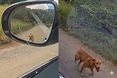Quando ele entrou no carro para seguir viagem, o cão começou a correr atrás, como quem dizia: “Ei, você esqueceu de me levar.”