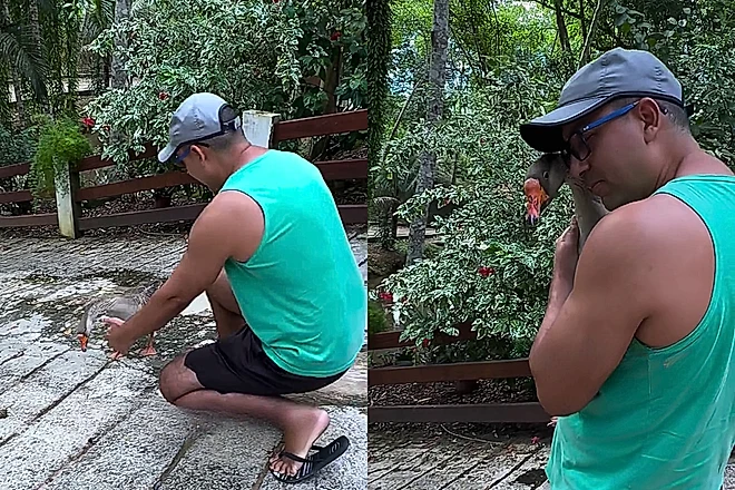 Um vídeo que circula nas redes sociais tem chamado a atenção pela demonstração de afeto entre uma espécie pouco convencional e um homem.
