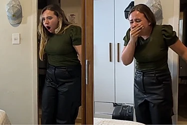 Mas, logo ao entrar, algo chamou sua atenção: o celular estava posicionado no chão, apontado para porta. Estranhando a cena, ela perguntou, curiosa: “O que você tá gravando?”