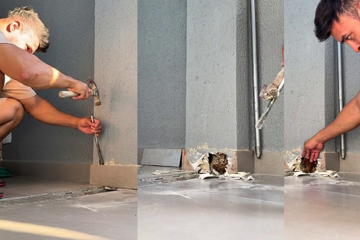 "Parecia só um ruído comum": Homem segue seu instinto, quebra a parede e descobre animalzinho lutando para sobreviver