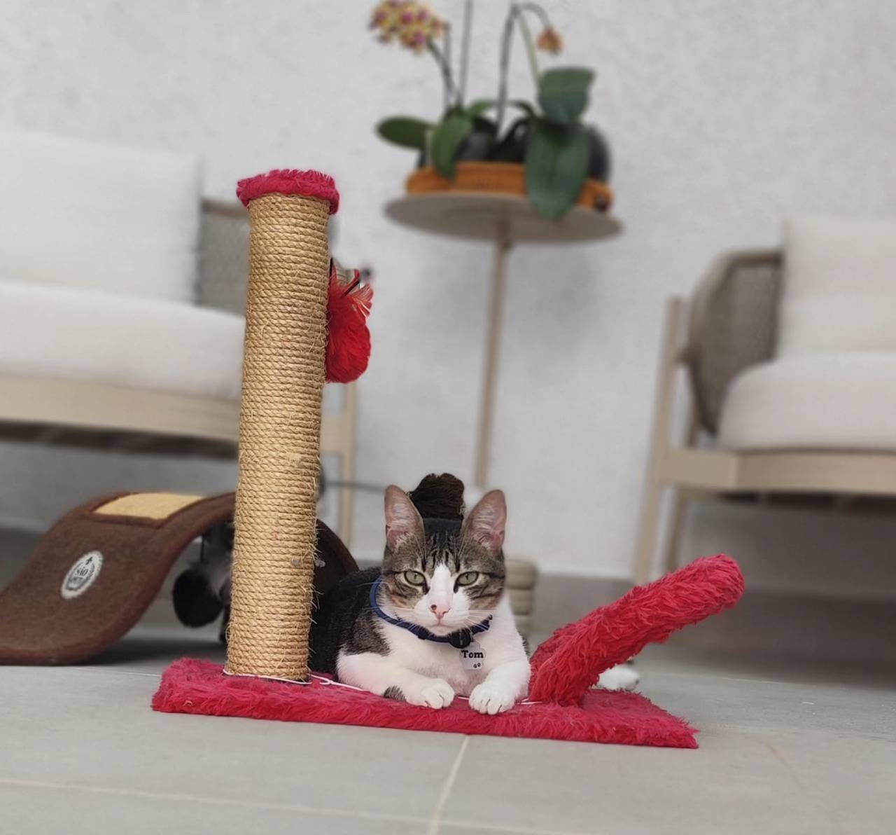 Em uma dessas cenas encantadoras, Tom aparece deitado em sua caminha, completamente relaxado, de barriguinha para cima, em um sono profundo e tranquilo. A posição mostrava o quanto ele se sentia seguro, confortável e em paz naquele ambiente.