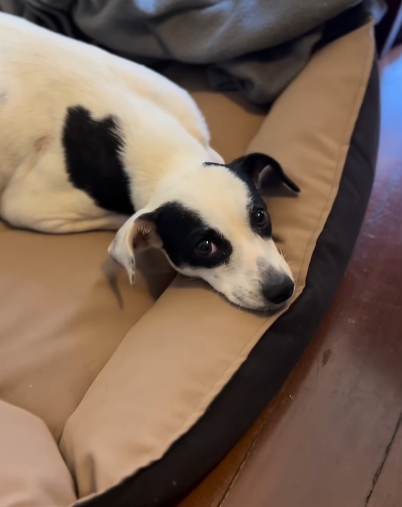 Assim que chegaram em casa, a cadela recebeu os primeiros cuidados.