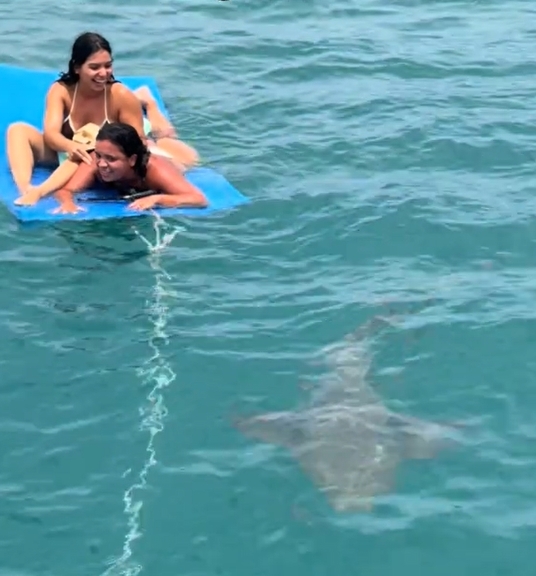 “Eu avisei, olha o tamanho dele”: Amigas se divertiam em cenário paradisíaco até perceberem quem nadava ao redor delas