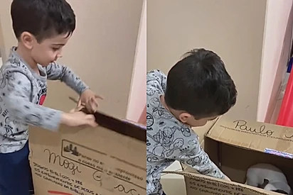 “Ela gosta de mim?”: Menininho não sabia que dentro da caixa estava sua futura melhor amiga e vive cena inesquecível
