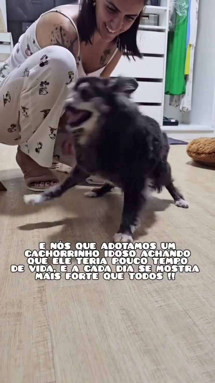 O pequeno animal, carinhosamente apelidado de cachorro fóssil, tornou-se um símbolo de resiliência ao mostrar que a idade avançada e as limitações físicas não são barreiras para a alegria.