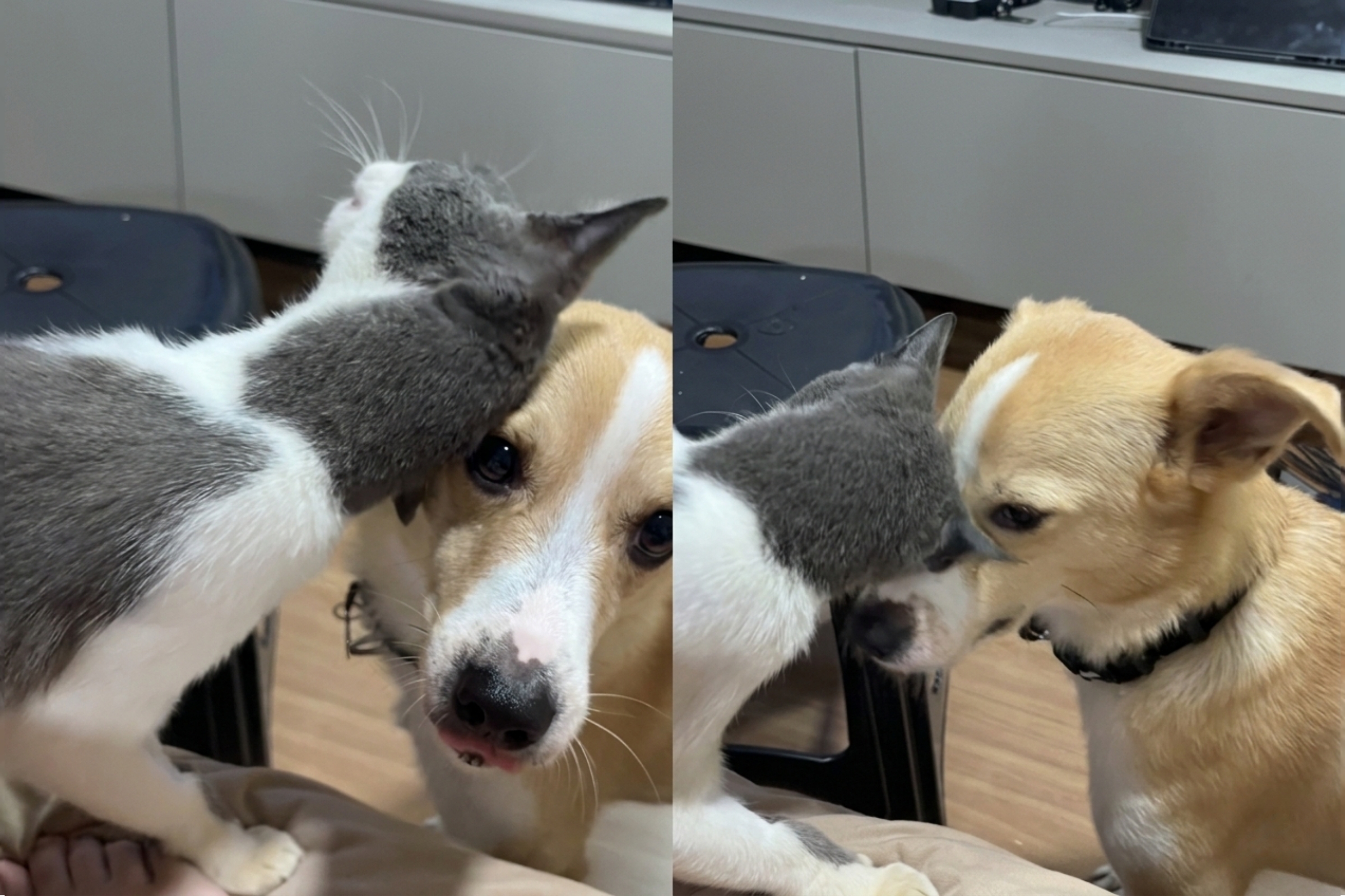 “Golpe baixo do gato”: Em lar temporário, gatinha cria plano para conquistar cachorro e convencer jovem a adotá-la