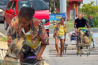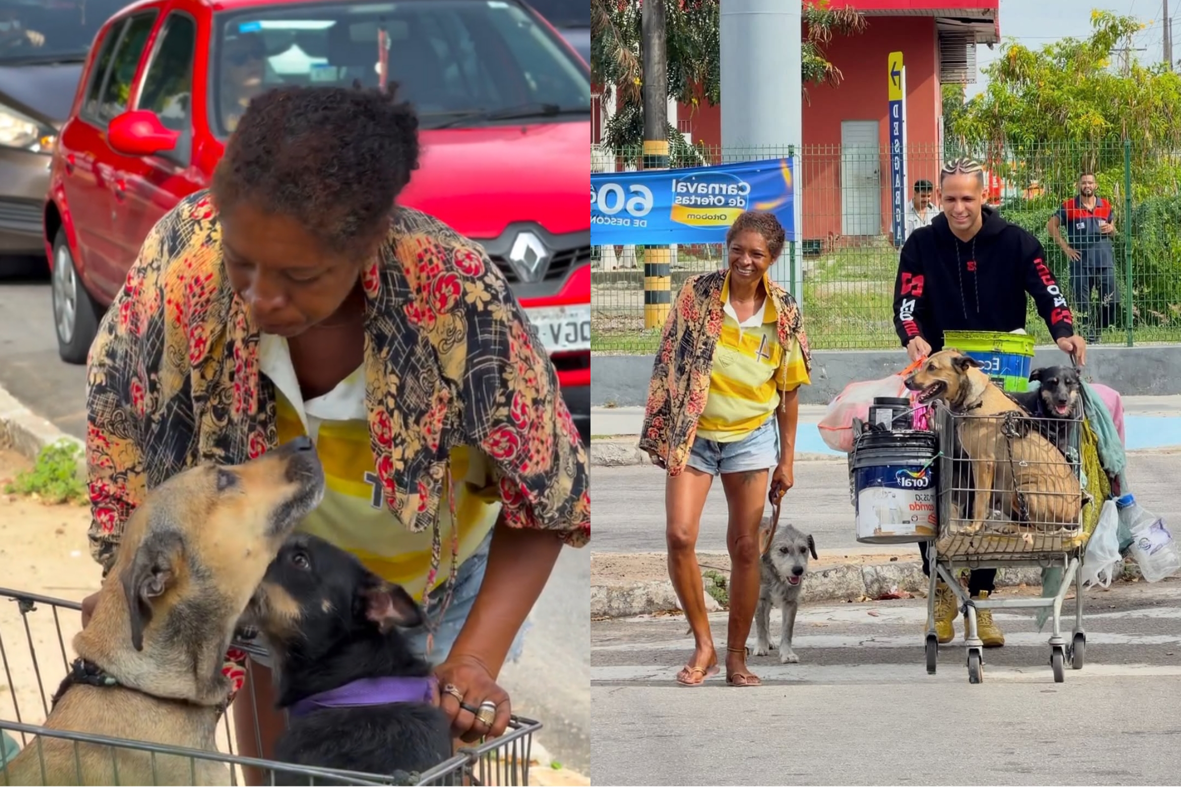 “Hoje você é a rainha”: Gesto de amor transforma o dia de mulher em situação de rua e de seus três cachorrinhos