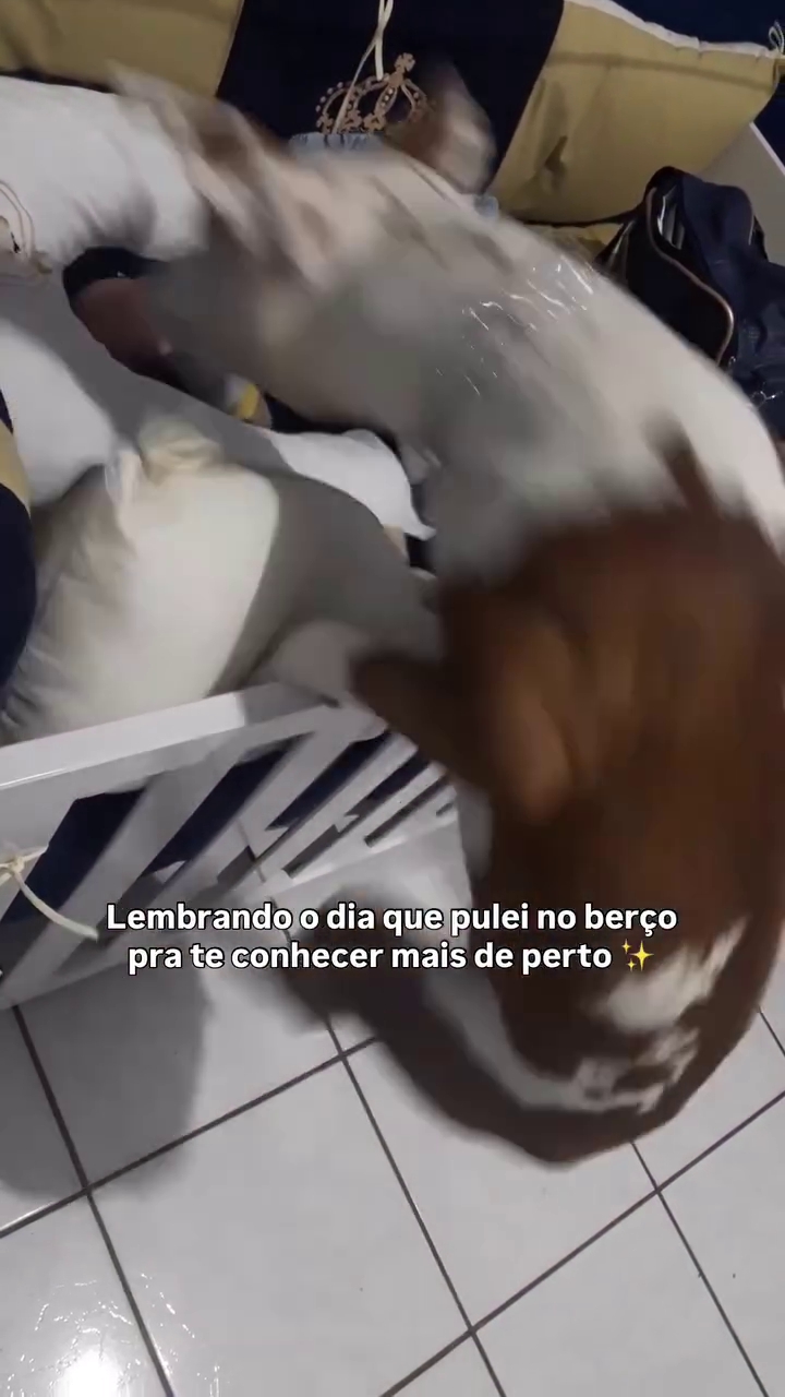 “Lembrando o dia que pulei no berço pra te conhecer mais de perto”, descreve a legenda do vídeo que marcou o início de uma trajetória onde o cão parece compreender as limitações físicas do amigo.