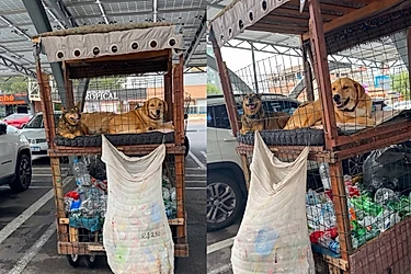 No vídeo compartilhado nas redes sociais, é possível ver o carrinho do trabalhador. Na parte traseira, adaptado com cuidado, existe um compartimento reservado para os três cachorros.