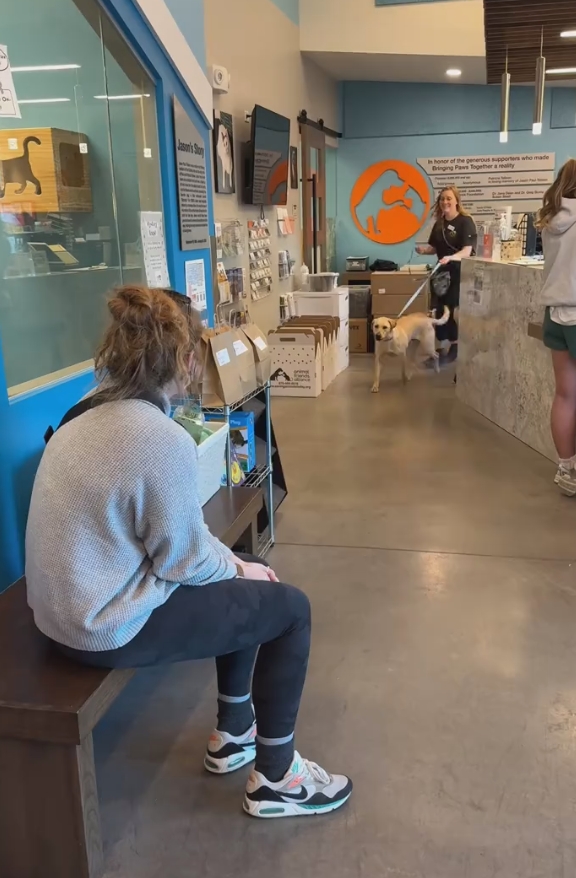 O cachorro reconheceu a tutora imediatamente. Ele começou a abanar o rabo com tanta força que parecia não conseguir conter a alegria.