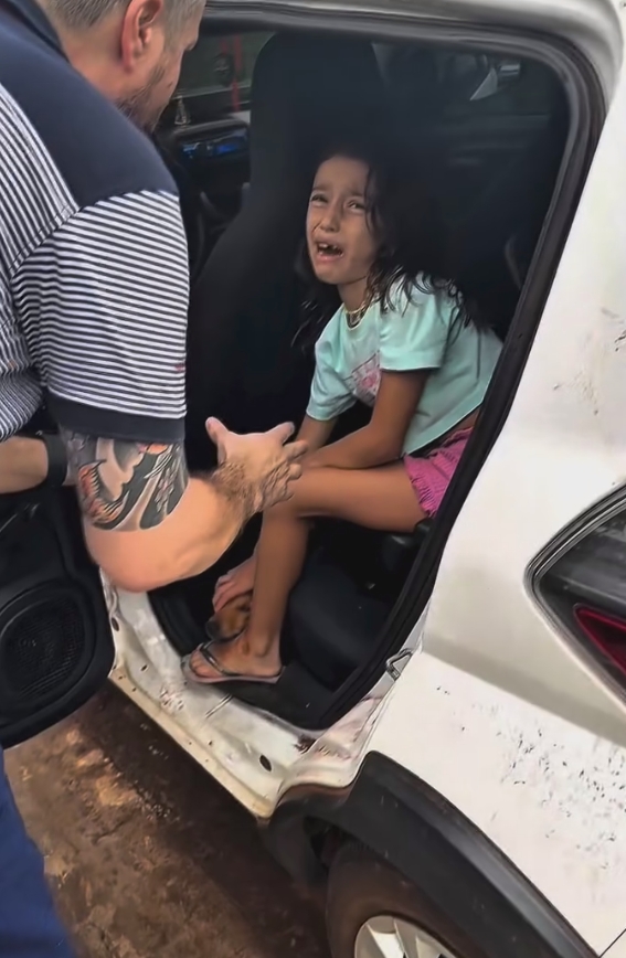 Encantada com o animal, ela tomou uma decisão rápida e muito determinada: colocou o cachorro dentro do carro dos pais para levá-lo para casa.