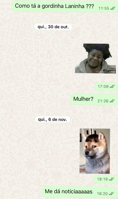 “Essa foi a resposta que ela me deu depois de eu ficar desde outubro mandando mensagem e nenhuma resposta”, relatou.