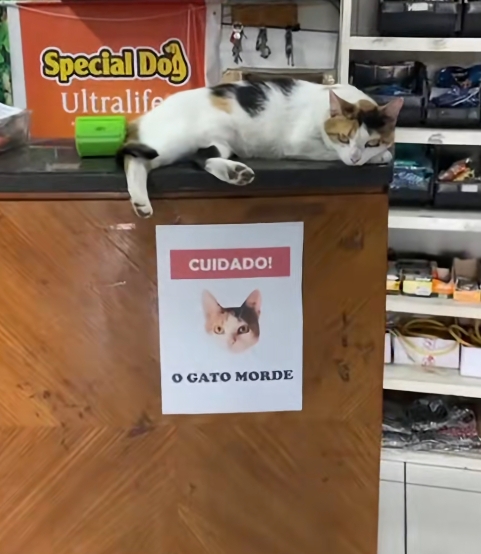 Quem entra no pet shop da família Busatto, em Irati, no Paraná, logo percebe um aviso bem claro no balcão: “Cuidado! O gato morde”.
