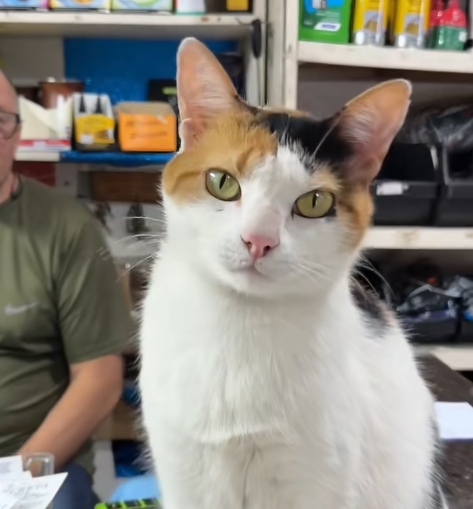 "Se tem placa tem história": Gatinha Mimi tem cartaz que alerta para seu comportamento e mesmo assim clientes se arriscam