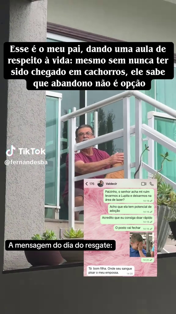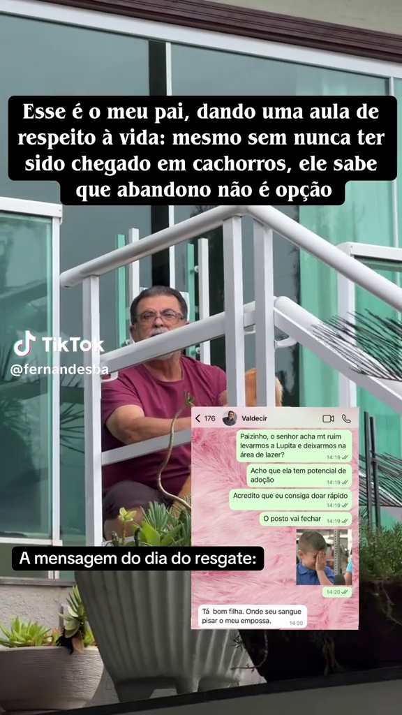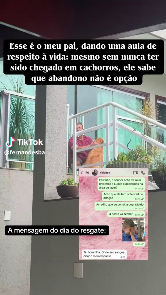 "Esse é o meu pai, dando uma aula de respeito à vida: mesmo sem nunca ter sido chegado em cachorros, ele sabe que abandono não é opção"