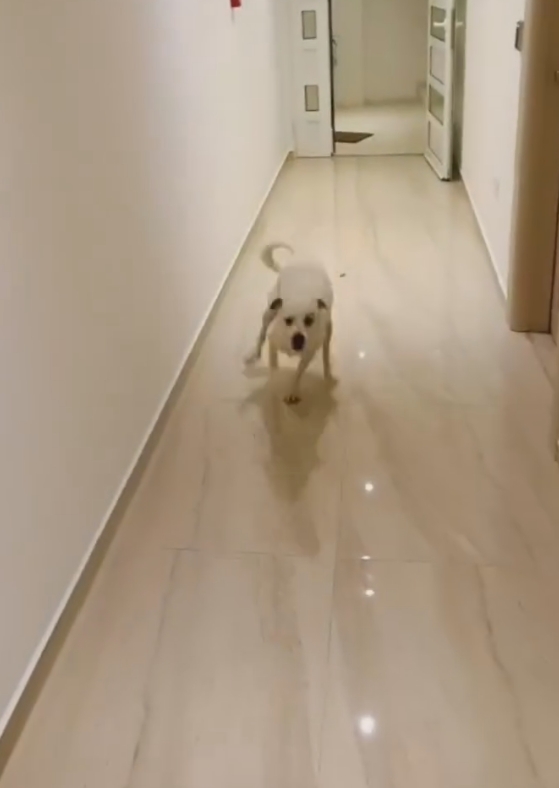 Um cachorrinho apareceu do nada, radiante, correndo pelos corredores como se estivesse comemorando a chegada dos hóspedes.