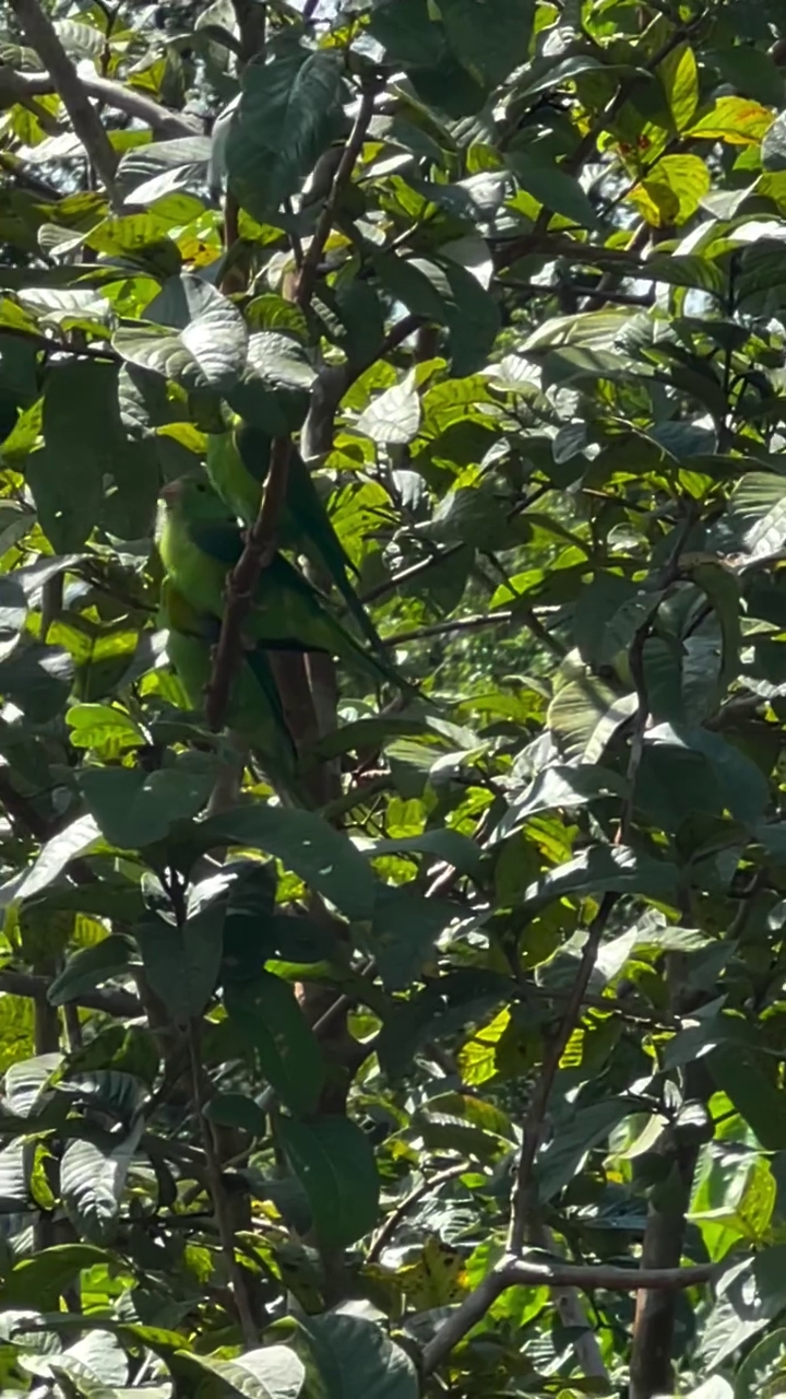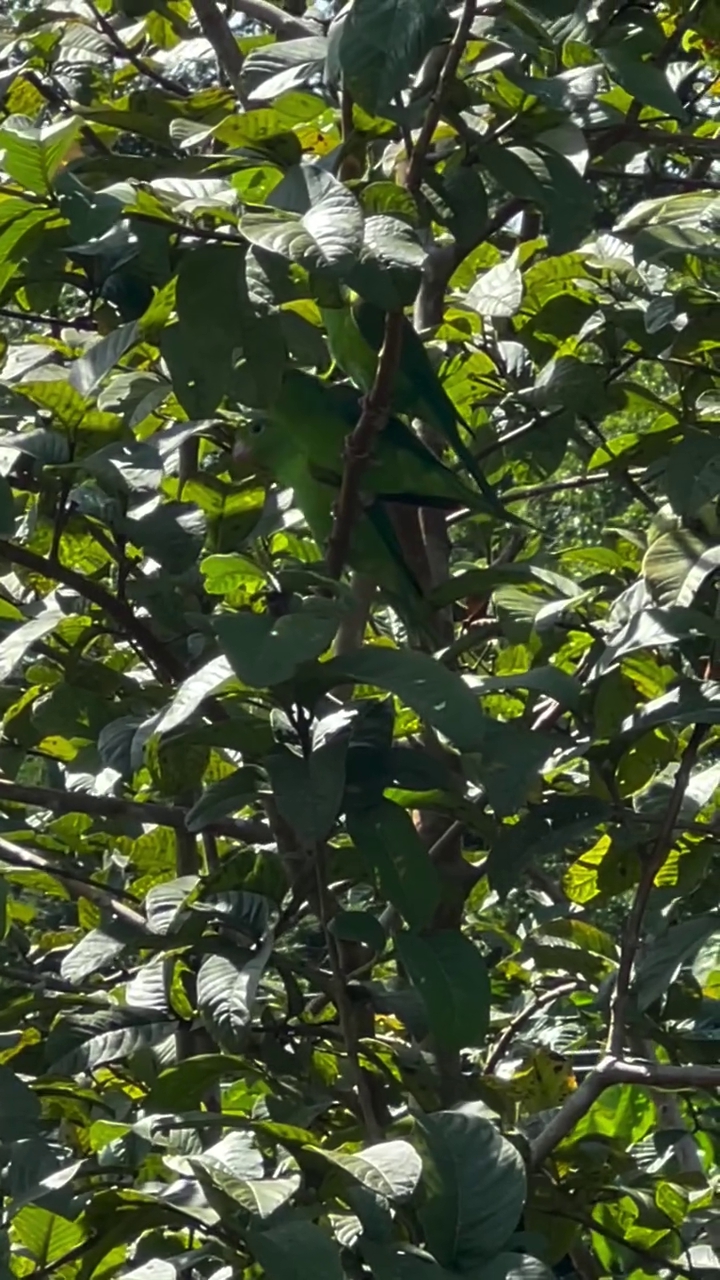 A aproximação das aves aconteceu de forma gradual, motivada pela fartura de frutas no terreno. Com o amadurecimento das goiabas neste ano, os periquitos começaram a frequentar o pomar da família.