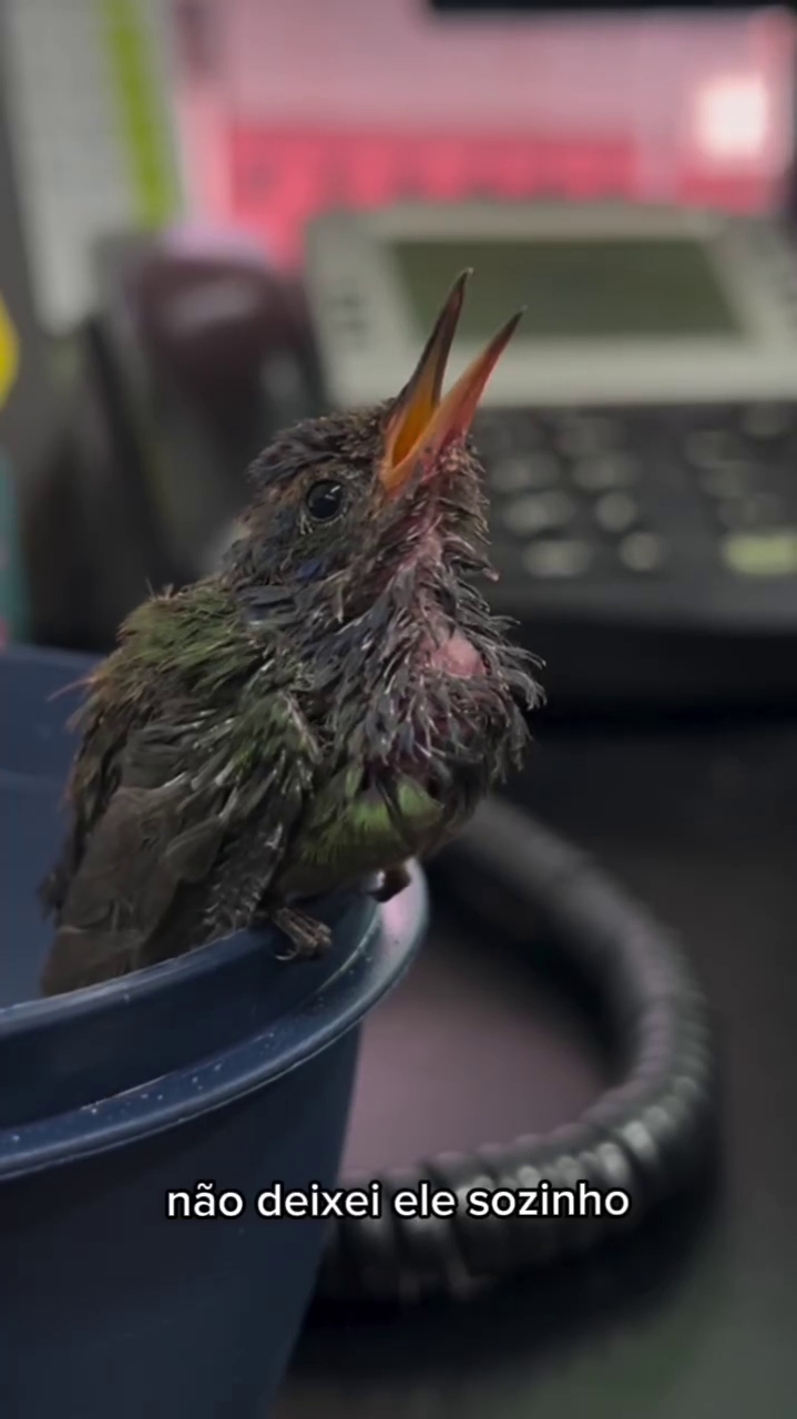 Ao encontrar um filhote de beija-flor caído no asfalto, sem conseguir voar e vulnerável a diversos perigos, ela decidiu intervir imediatamente.