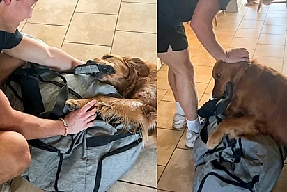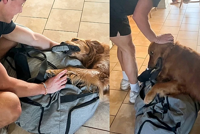 “Não vai, por favor”: Golden se agarra com todas as forças à mala para impedir partida de tutor e cena chama atenção
