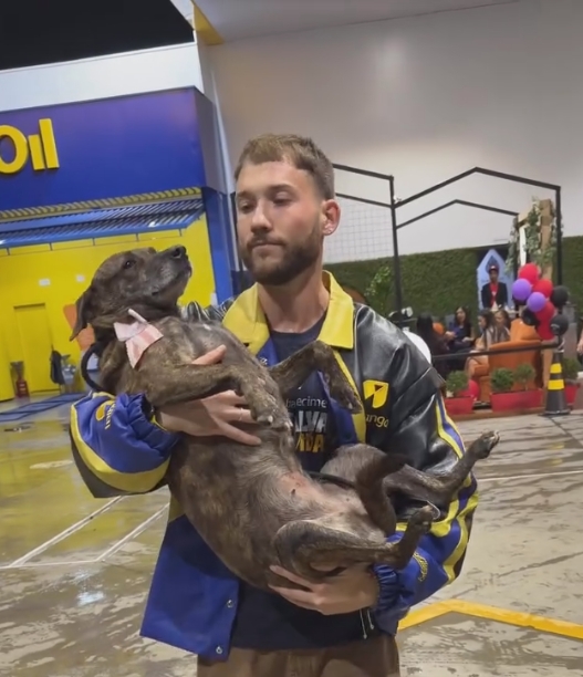 O encontro, registrado e compartilhado nas redes, começou exatamente como muitos temiam: com a cadela reativa, desconfiada, rosnando e mantendo distância.