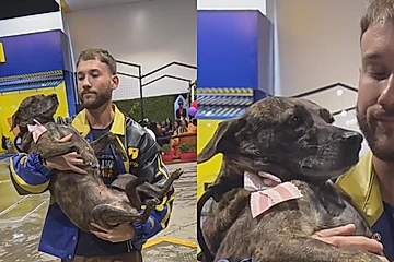O vídeo compartilhado pelo perfil do cão Matuê mostra o momento da volta.