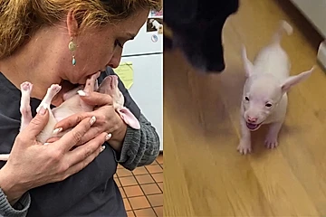 Em entrevista ao People, Shapiro contou que recebeu Piglet por meio dos socorristas da Colbert Veterinary Rescue Services, que entraram em contato perguntando se ela poderia oferecer lar temporário para um filhote surdo e cego, resgatado de uma grave situação de acúmulo de animais.