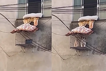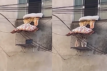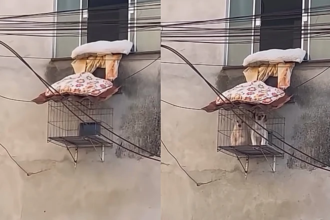 Ao observar a fachada de um apartamento, um rapaz notou um detalhe muito curioso. Logo abaixo de uma janela, havia uma espécie de abertura na parede que dava acesso a uma gaiola instalada do lado de fora.