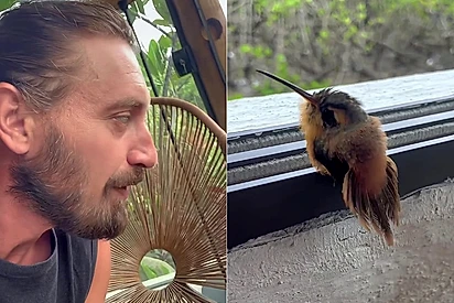 “A natureza escolheu ficar comigo”: Filhote de beija-flor cresce, encanta com sua beleza e continua visitando seu amigo