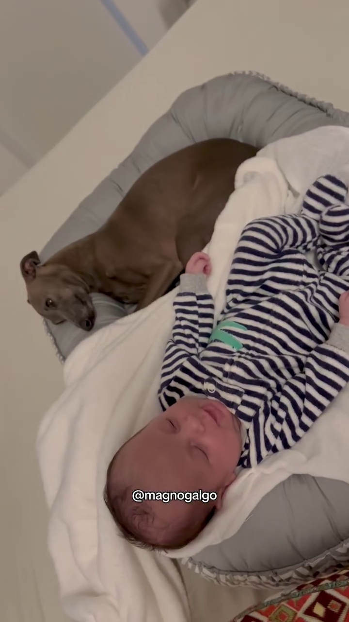 O que começou com uma curiosa aproximação para cheirar o "mini humano" evoluiu para uma rotina onde o animal passou a dormir encostado ao ninho do bebê, servindo como uma sentinela silenciosa durante o repouso da criança.