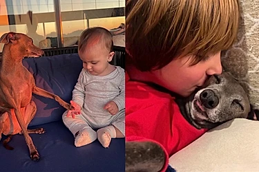 “Os pelos ficando branquinhos”: Galgo se apaixona por bebê no primeiro olhar e, 7 anos depois, amizade emociona milhões