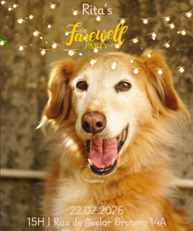 “Adorada por todos os que cuidam dela, a Rita é uma menina muito especial. Com uma alegria contagiante, acorda sempre de cauda a abanar, pronta para começar o dia. Adora passear, correr e brincar. E tem um espírito jovem que é de invejar. Mas também gosta do seu descanso, gosta muito de receber carinho — e de dar também. A Rita ainda tem muito para viver e merece conhecer o conforto de um lar. És tu que lho vais dar?”